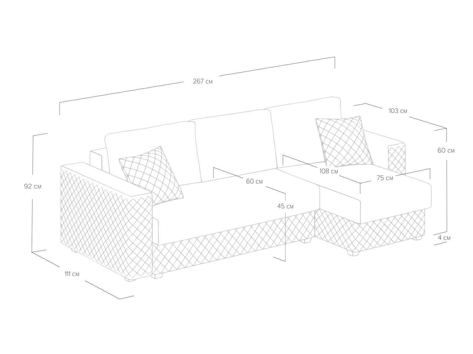 Диван оснащён современным механизмом трансформации пантограф, который обеспечивает лёгкость и удобство в использовании. В его основе лежит ортопедический матрас с независимым пружинным блоком, что гарантирует комфортный отдых и здоровый сон. Удобная глубина и высота сидения способствуют повседневному комфорту, позволяя расслабиться после долгого дня. Декоративная стёжка на подлокотниках и цоколе подчёркивает строгие, геометрические формы дивана, придавая ему стильный и современный вид. Задняя спинка дивана защищает от прикосновения со стеной во время сна, а также предотвращает возможные повреждения и загрязнения стен. В угловой секции (оттоманка) предусмотрено удобное место для хранения, что позволяет рационально использовать пространство. В комплект дивана входят две стёганные декоративные подушки, которые дополняют его внешний вид и обеспечивают комфорт. При сборке вы можете самостоятельно выбрать, с какой стороны будет расположен угол — справа или слева.