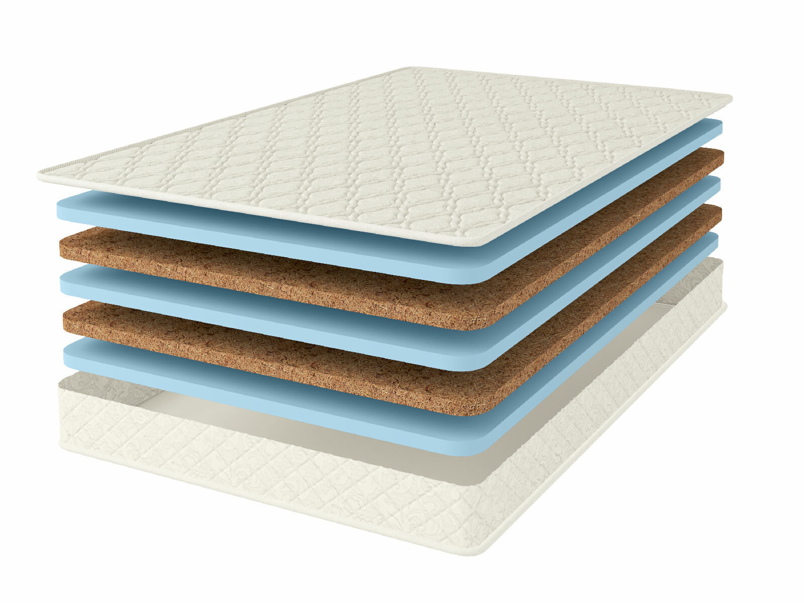 Внутри матраса установлены природный наполнитель латексированная койра кокоса, а также гипоаллергенная пена Ecofoam. Если койра добавляет модели необходимую жёсткость и правильный воздухообмен, то пена отвечает за приятную адаптивность поверхностей и комфорт человека.