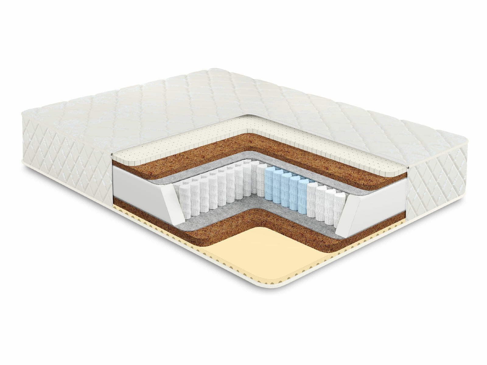 Кокосовое волокно с натуральным латексом придает жесткость, экологически чистый материал, который прекрасно вентилируется.