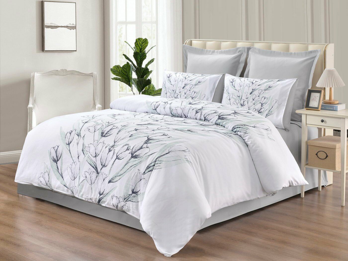 Пошив: пододеяльник на пуговицах, наволочки с клапаном.