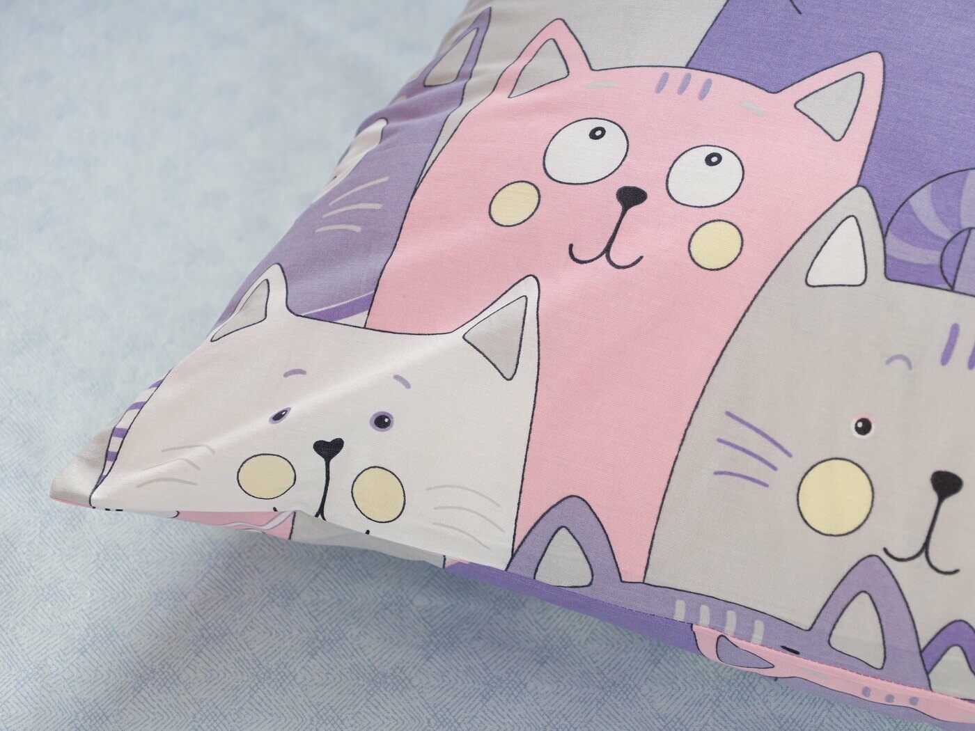 Наволочка – полностью из принтованной ткани, на запахе. Запах широкий, расположен сбоку по стороне 50 см.