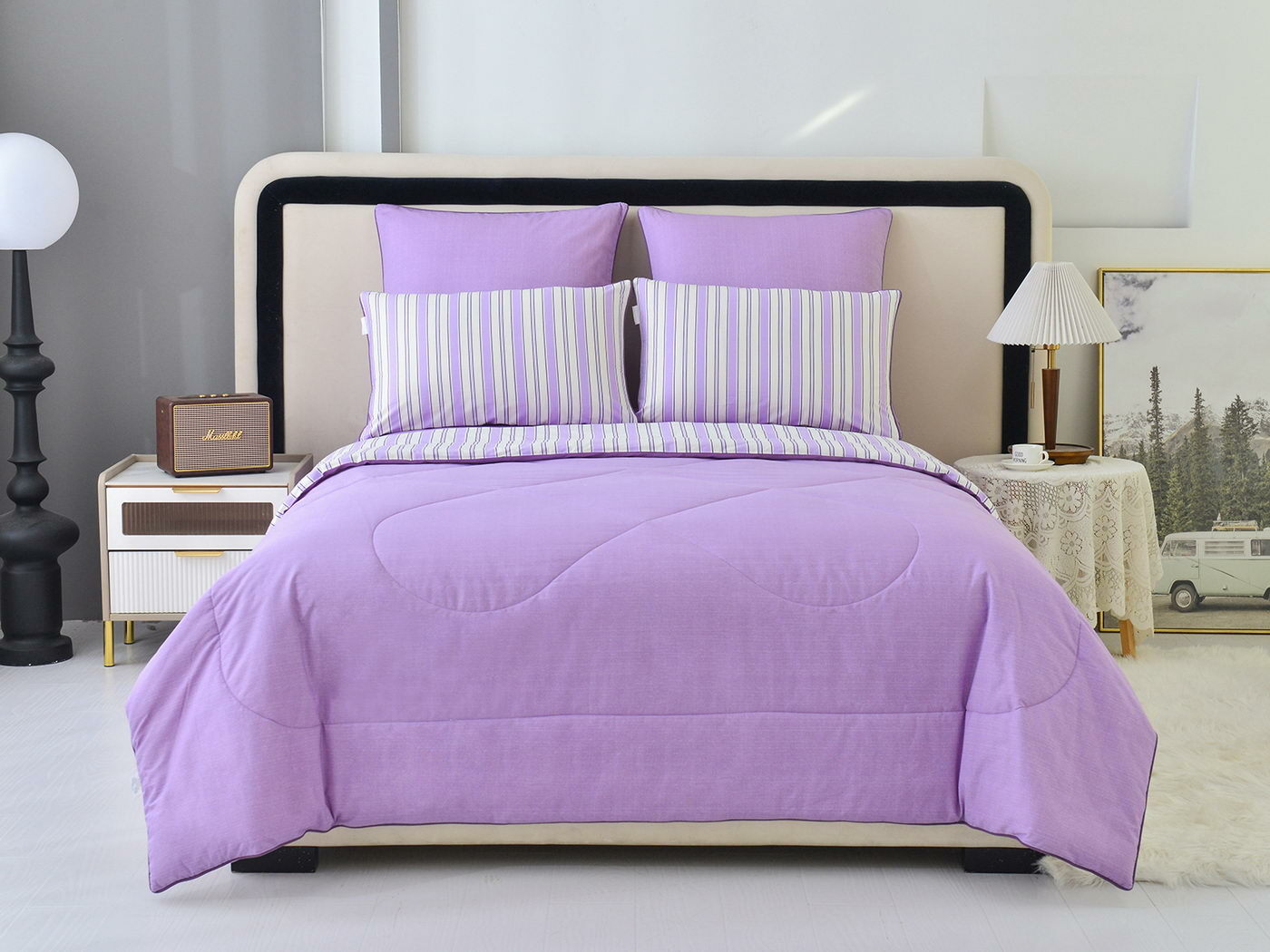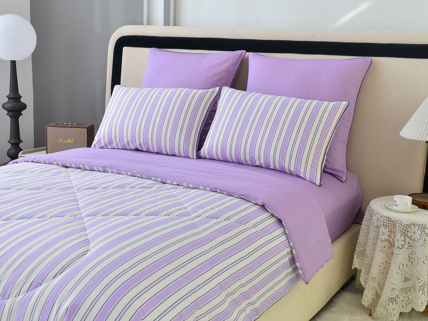 Особенность: двусторонняя модель, наволочки и одеяла декорированы кантом.