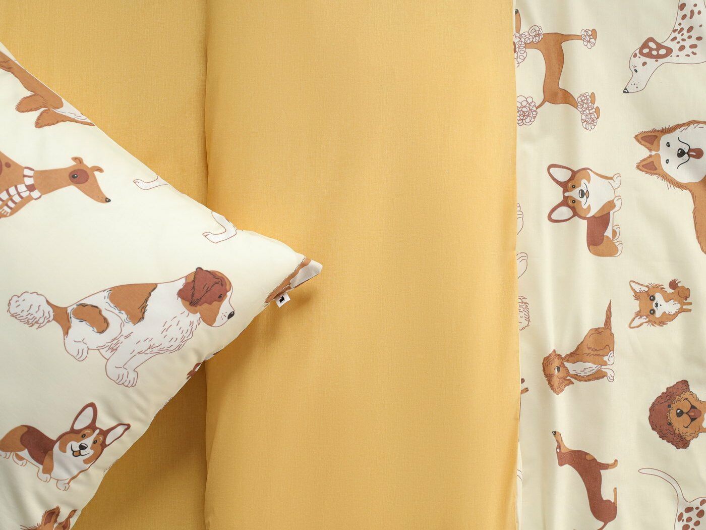 Наволочка – полностью из принтованной ткани, на запахе. Запах широкий, расположен сбоку по стороне 50 см.