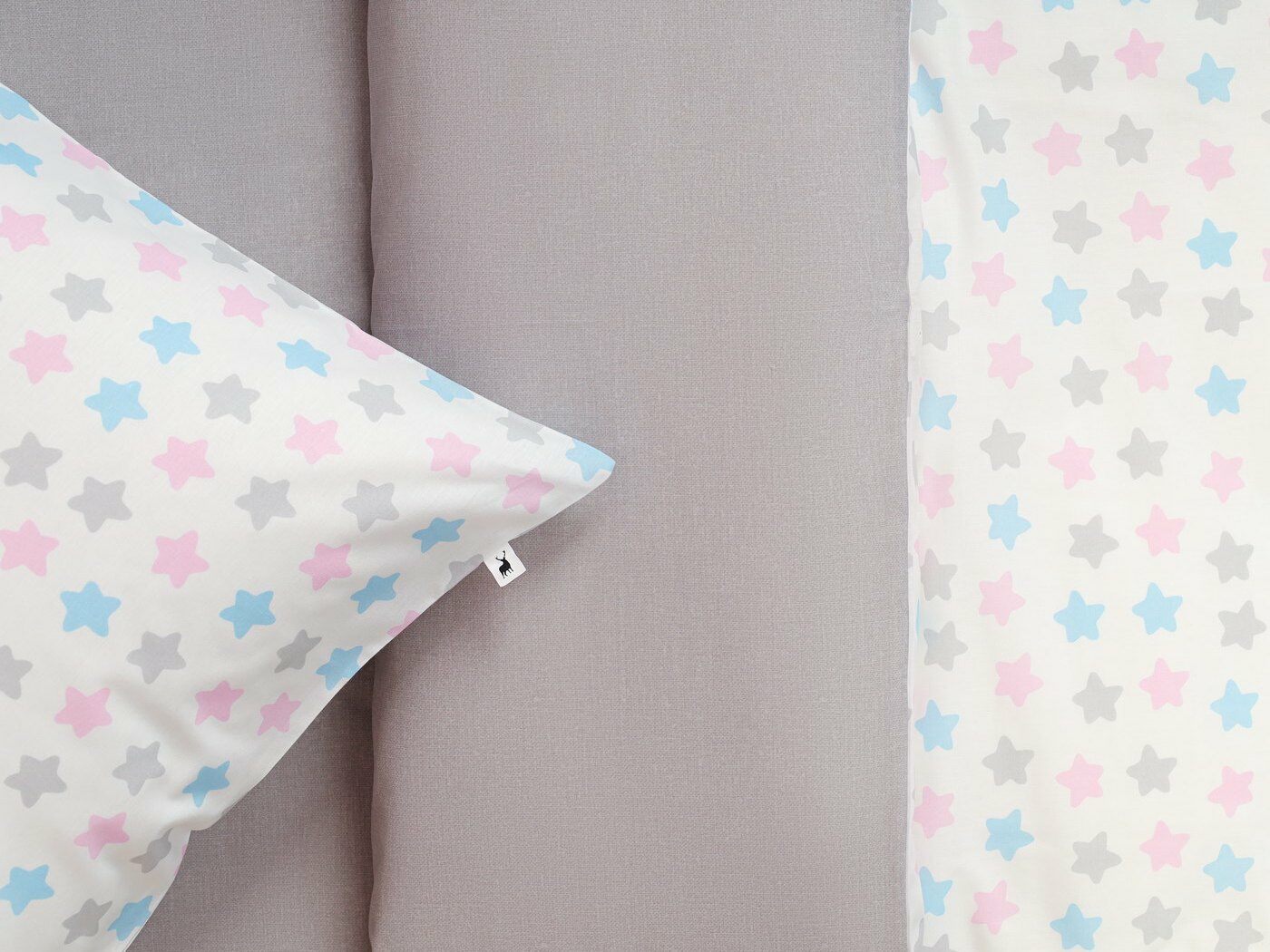 Пододеяльник –двусторонний: верх из ткани А (принтованная ткань), обратка из ткани В (однотонная рогожка), с потайной молнией.