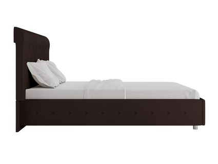Для обивки кровати используется экокожа, которая легко чистится и максимально напоминает натуральную кожу. При стандартной комплектации обратная сторона изголовья выполняется из технического материала. Однако по желанию его можно заменить на основную обивку кровати.