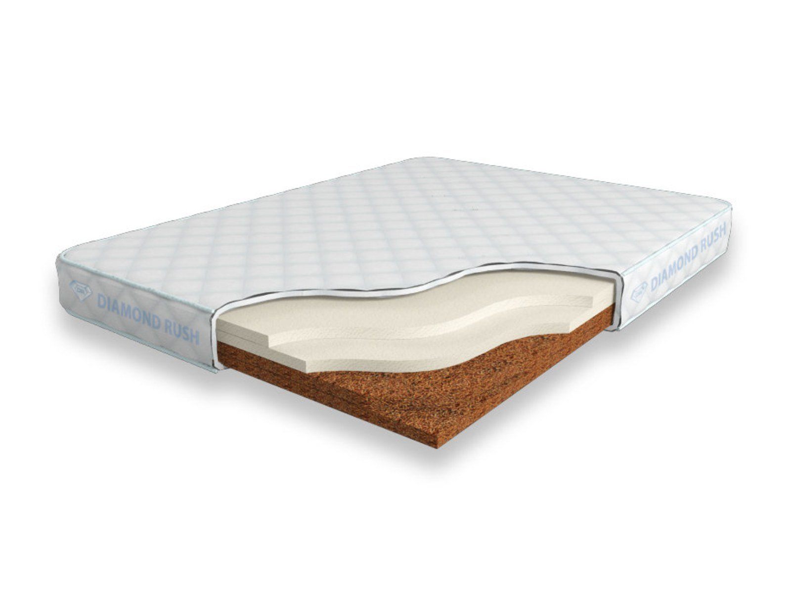 Матрас Diamond Rush Cocos Contrast 12 SD является беспружинным, т.е. не имеет в своей основе пружинного блока. Особенность этой модели в том, что она сочетает в себе одновременно среднежесткий и максимально жесткий матрасы. С одной стороны идет один или несколько слоев латексированной кокосовой койры (3см), с другой - искусственного латекса (3см).