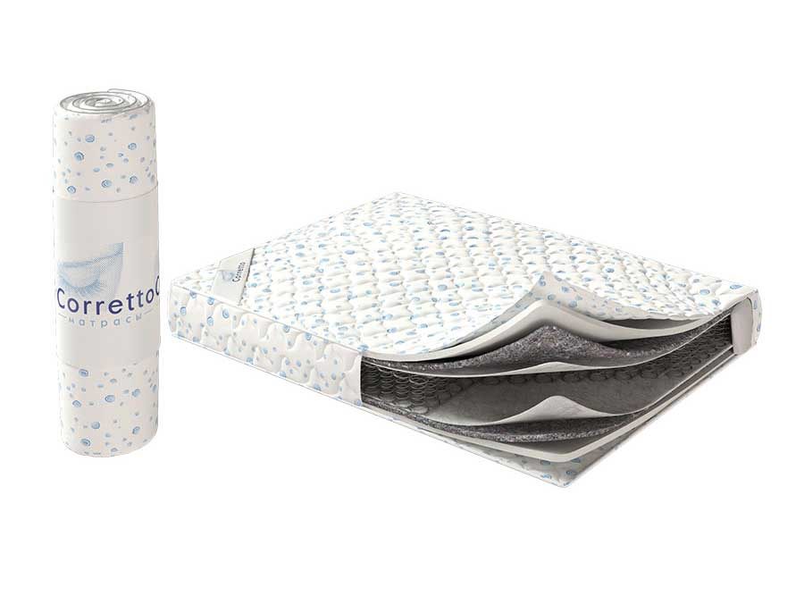 Данная модель обладает яркой особенностью – она поставляется в скрутке. Производитель аккуратно упаковывает матрас под вакуумом и сворачивает в рулон, поэтому изделие поставляется в оригинальной плёнке фабрики Corretto. Такое решение продиктовано, во-первых, гигиеническими соображениями. Вы получаете запечатанный матрас. Упаковка гарантирует, что изделие абсолютно новое и не было в использовании до этого. Во-вторых, вы экономите деньги. Компактное хранение и доставка позволяют существенно урезать расходы, а значит напрямую отражаются на цене самого матраса.