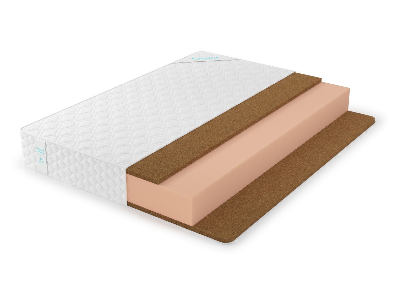 Сверху и снизу от пенополиуретанового блока прокладываются слои койры кокоса толщиной 3 см. В разрезе такая структура напоминает своеобразный сэндвич. Большой объём кокоса даёт высокую жёсткость, поскольку это твёрдая и очень плотная плита. У койры есть важное качество: несмотря на свою жёсткость, она умеет повторять изгибы силуэта и даёт ортопедически правильную поддержку для спины. Не случайно данный наполнитель очень любят врачи-ортопеды и предпочитают люди, заботящиеся о своей осанке. К тому же, кокос отлично «дышит», благодаря своему природному происхождению, поэтому ничто не препятствует естественной вентиляции внутри матраса.