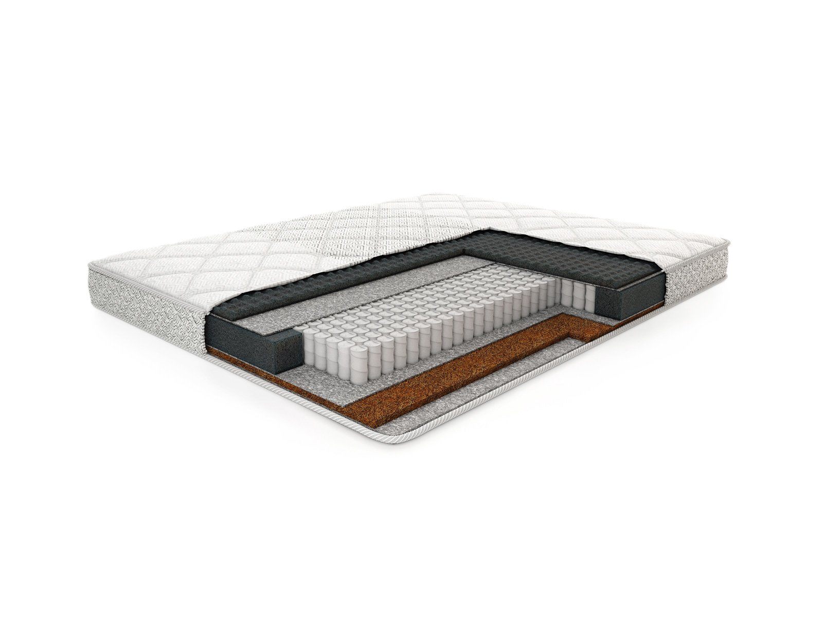 Так за более жёсткую поверхность отвечает койра кокоса – очень плотная и твёрдая плита, которая изготавливается из кокосового волокна. Натуральная основа наделяет слой бактерицидными качествами – материал не подвержен гниению и в нем не живут микроорганизмы. Таким образом сохраняется чистота и гигиеничность спального места.