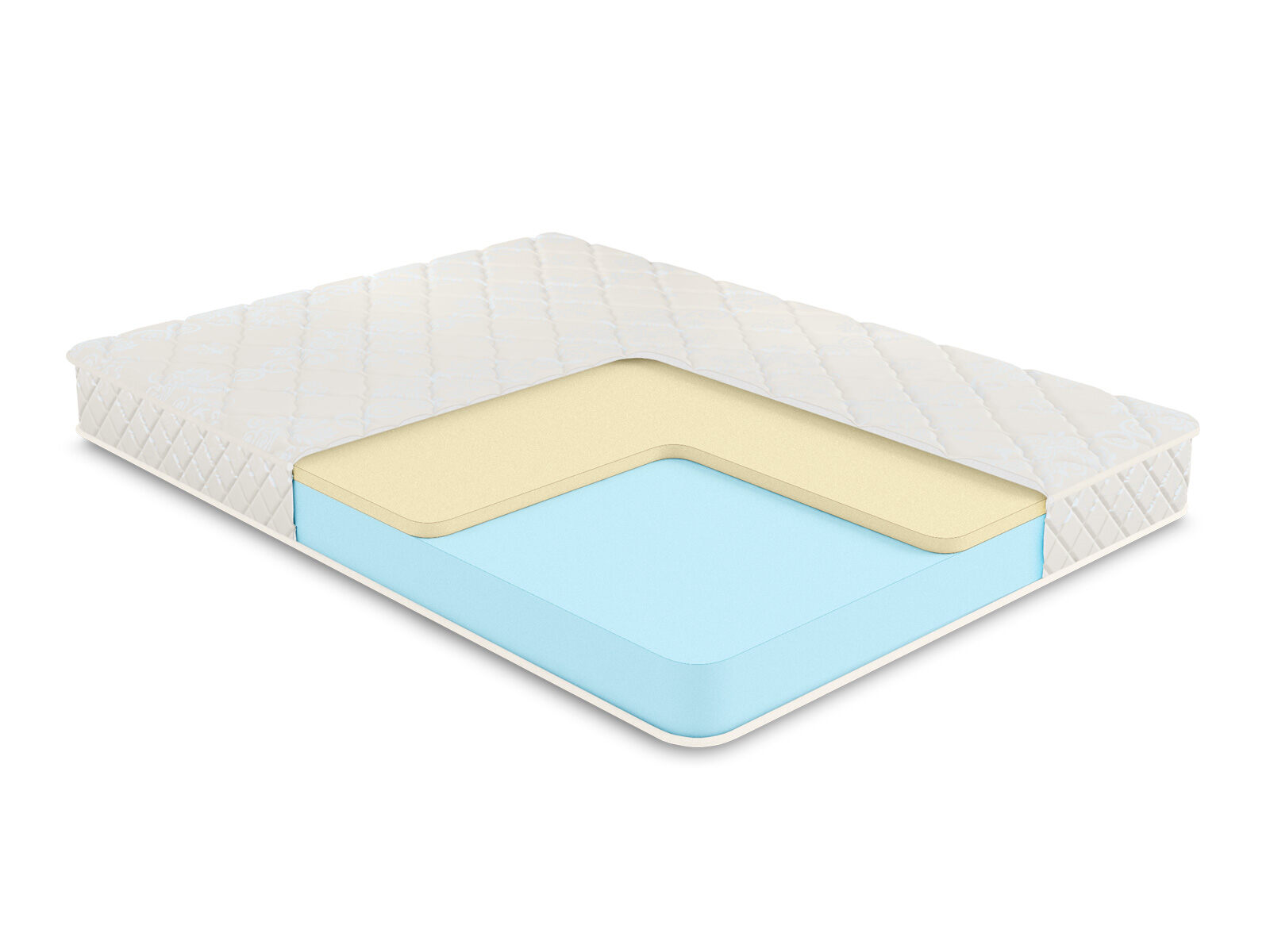 Жаккардовый чехол, выполненный с применением хлопкового волокна, завершает внешний облик изделия. Обивка ромбовидно простёгивается на синтепоне для повышения комфорта спящего.