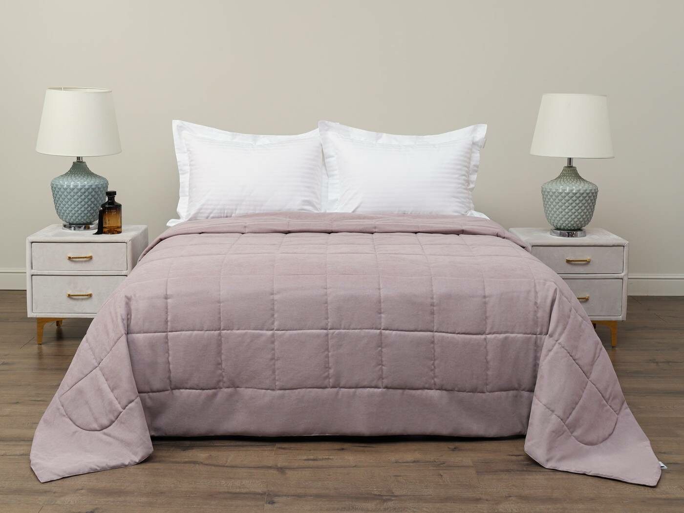 Ткань верха – бархатистый канвас. Канвас отлично себя зарекомендовал как износостойкий и плотный материал обеспечивающий мягкий противоскользящий эффект. Покрывала имеют классическую для канваса машинную стежку «квадрат». Плотная и мягкая фактура ткани канвас не оставляет зацепок, изнаночная сторона выполнена из матового и нежного тика. Такое покрывало украсит собою спальную или гостиную комнату, органично подчеркнет Ваш утонченный стиль.