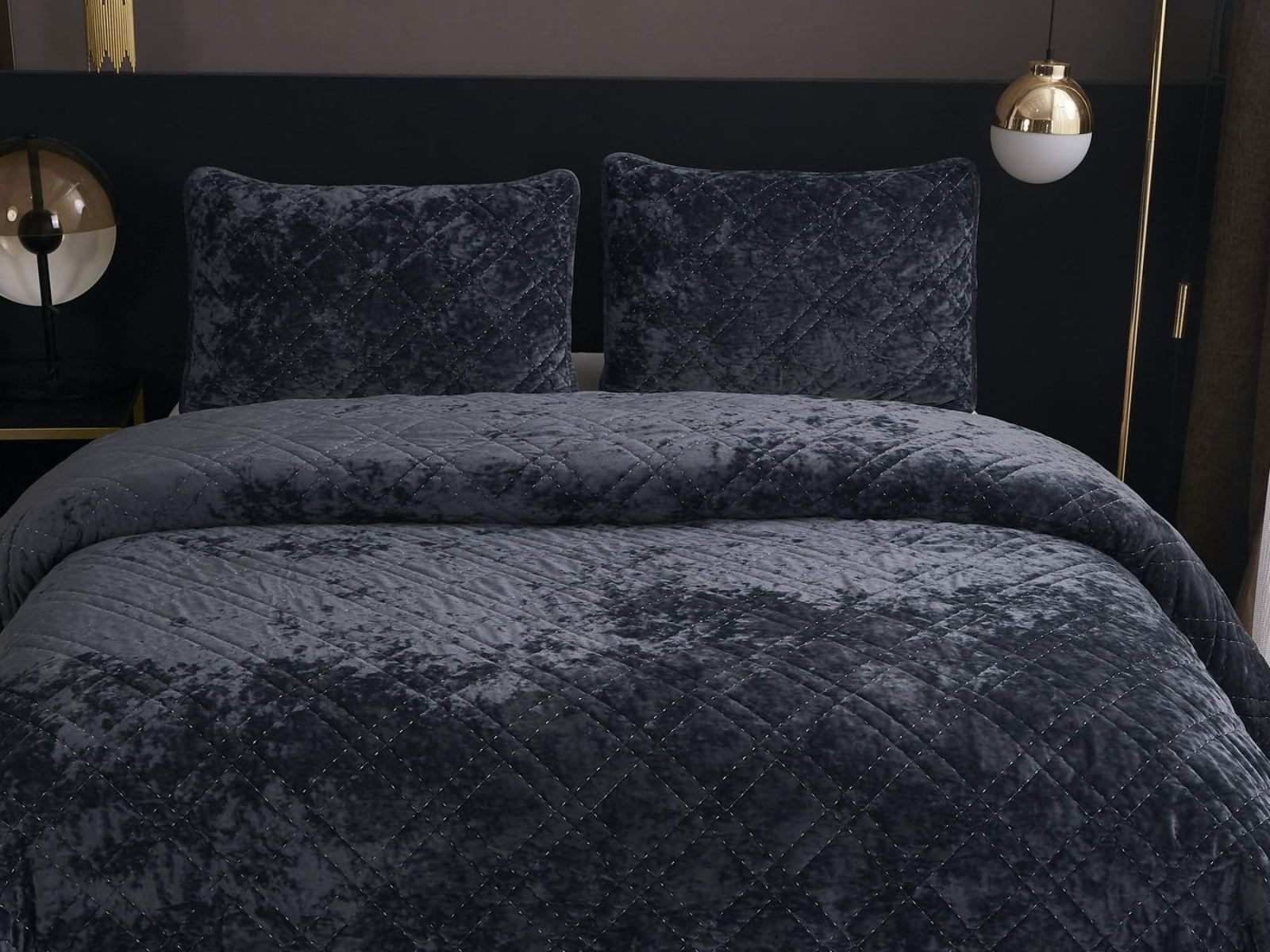 Покрывало Селена выполнено в девяти оттенках: пудра, антрацит, беж, изумруд, капучино, пепел роза, серебро, стоун, терракот. Они подойдут практически для любого интерьера, от классического, до модерна или романтического. Стеганое бархатное покрывало будет необыкновенно смотреться на вашей постели. В комплект входят покрывало и одна либо две наволочки (50х70 см) из аналогичного материала в зависимости от размера.