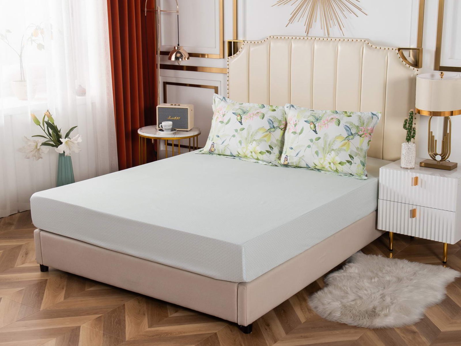 Удобная и практичная простынь на резинке не будет топорщиться и сбиваться во сне. Подойдет для матрасов высотой до 30 см.