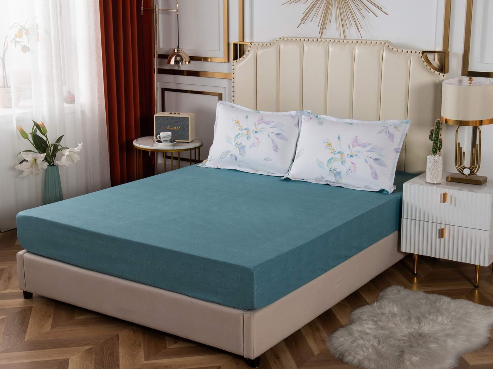 Удобная и практичная простынь на резинке не будет топорщиться и сбиваться во сне. Подойдет для матрасов высотой до 30 см.