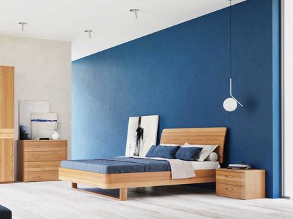 Корпус кровати Сен Реми изготовлен из массива ясеня. Изголовье высотой 104 см представляет собой деревянные пластины, установлены под углом. За счет этого получается слегка выгнутая поверхность удобная для спины, если расположиться сидя на постели. Укомплектована основанием из массива ясеня. Габаритные размеры: 6,8 см к ширине и 16 см к длине спального места. Не комплектуется ящиком для белья с подъемным механизмом.