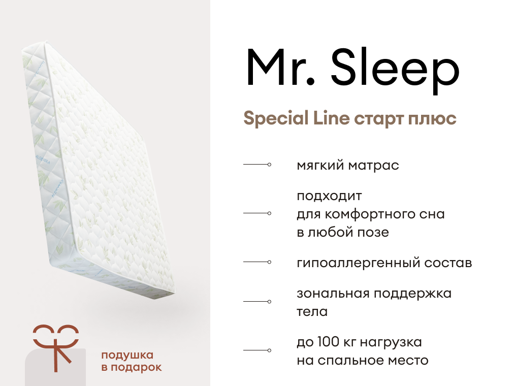 Мистер Слип Special Line старт плюс – отличный выбор для тех, кто ценит доступное качество, мягкость и комфортный сон.