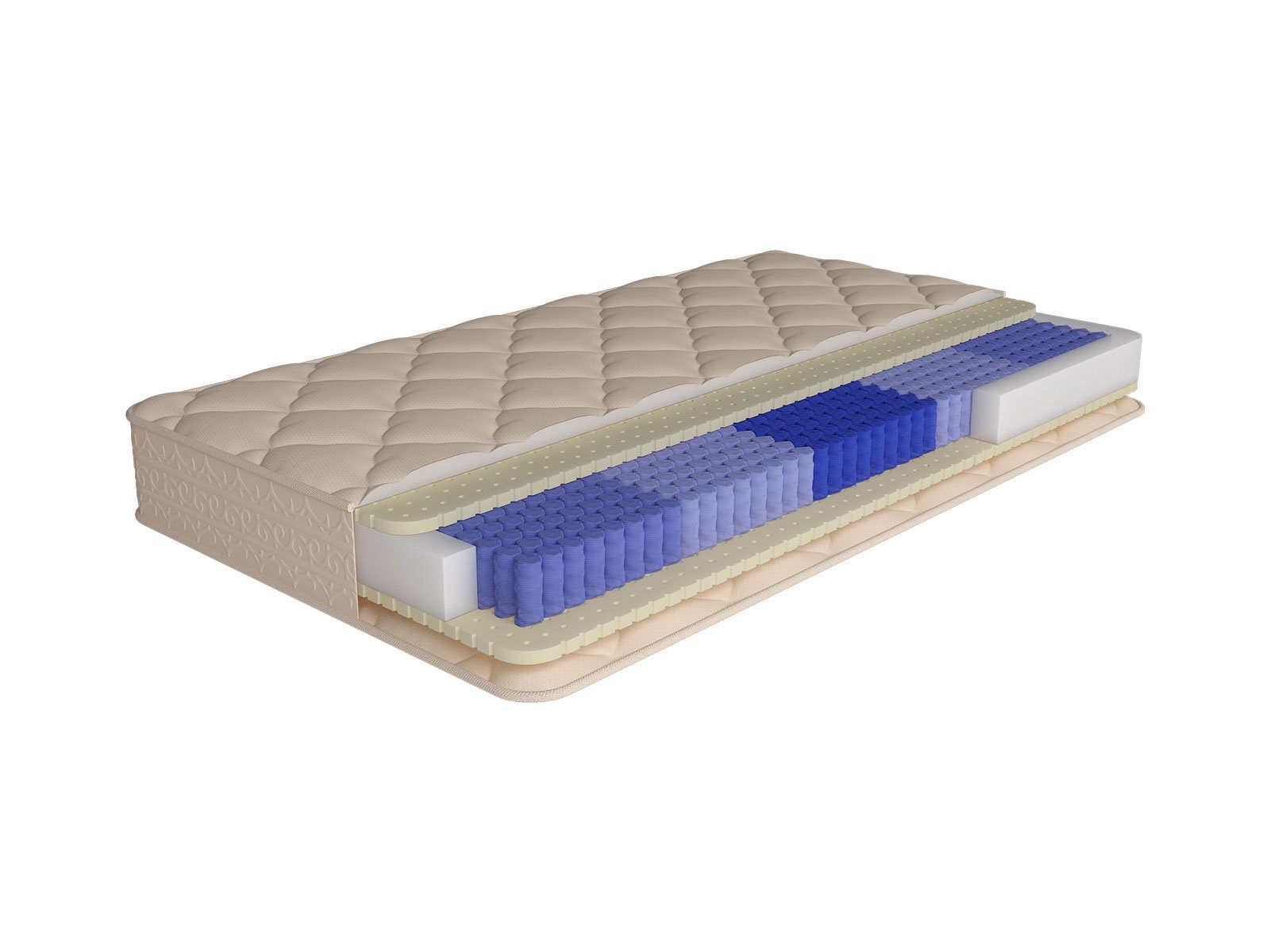 Для зон, поддерживающих ноги и голову, используется мягкий пружинный блок, обеспечивающий горизонтальное положение шейного отдела позвоночника и улучшающий кровообращение нижних конечностей.
